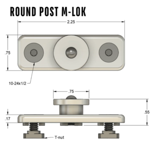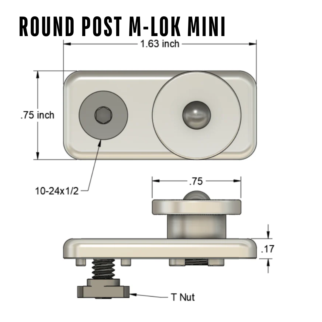 Okrągły słupek M-Lok Mini lub RPM Mini montuje się do gniazda M-Lok na łożu kolby karabinu lub innego elementu wyposażenia z gniazdem M-Lok lub podobnym rozstawem otworów. Po zamontowaniu w karabinie lub innym elemencie wyposażenia, łączy się z dowolnym systemem Lock lub Grip On.